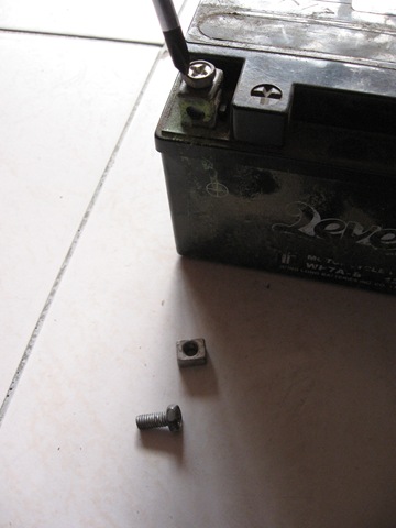 第三顆電瓶就是 2008/10/7 老渡邊親自去機車材料行買5號新電瓶回來加硫酸並自己換下來的!! 遇到的問題也是蓄電力已經幾乎沒有了.