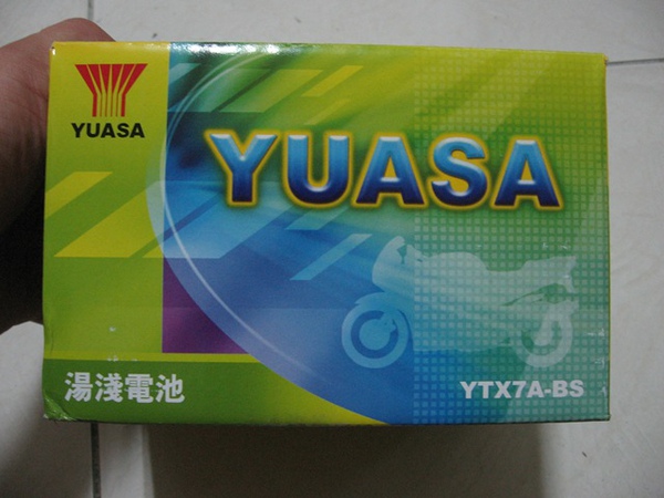 自取買回來了, 湯淺電池(YUASA), 型號: YTX7A-BS.